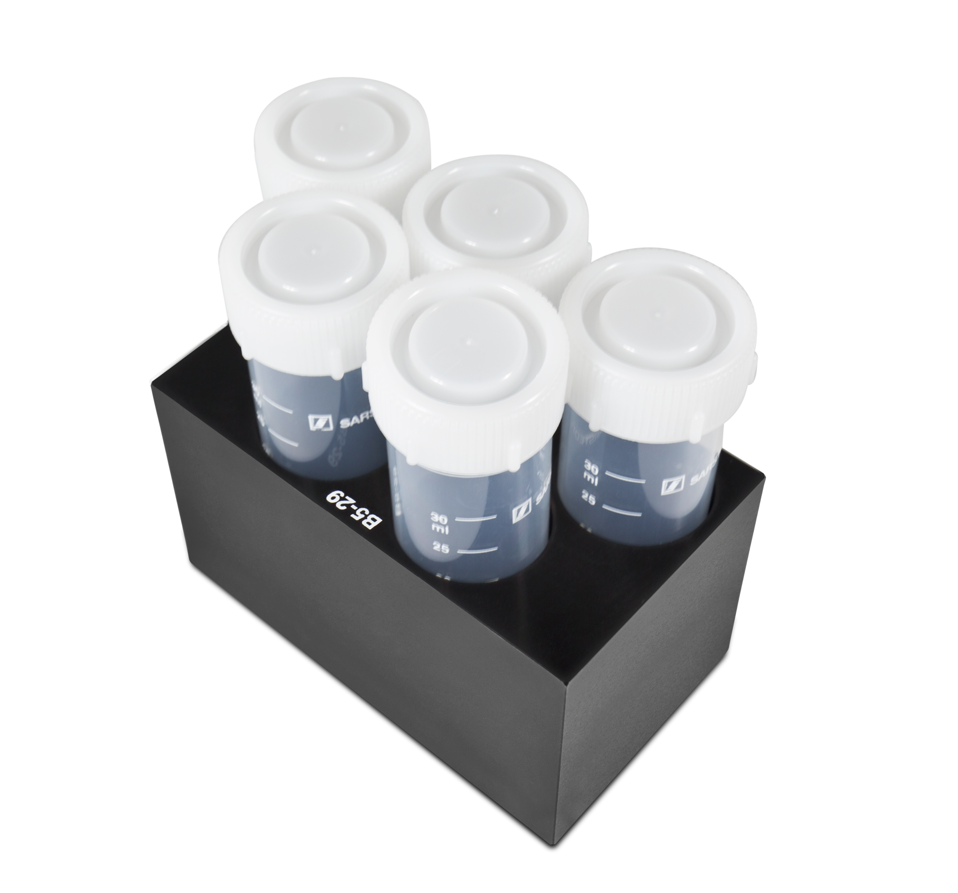 Block with 5 holes for 29 mm diameter tubes,flat bottom