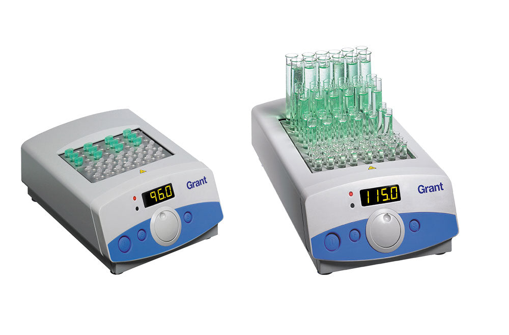 Designed for flexibility and efficiency the block heaters come with a choice of standard and custom blocks. The versatile dry block heater series are ideal for general sample heating, research or chemistry applications.